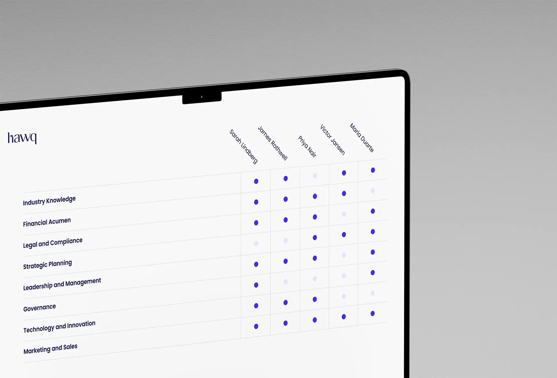 A skills matrix highlights areas where the board may lack certain expertise, as well as where there may be redundant skills. This allows the organization to take targeted action to fill these gaps, ensuring a well-rounded and effective board.